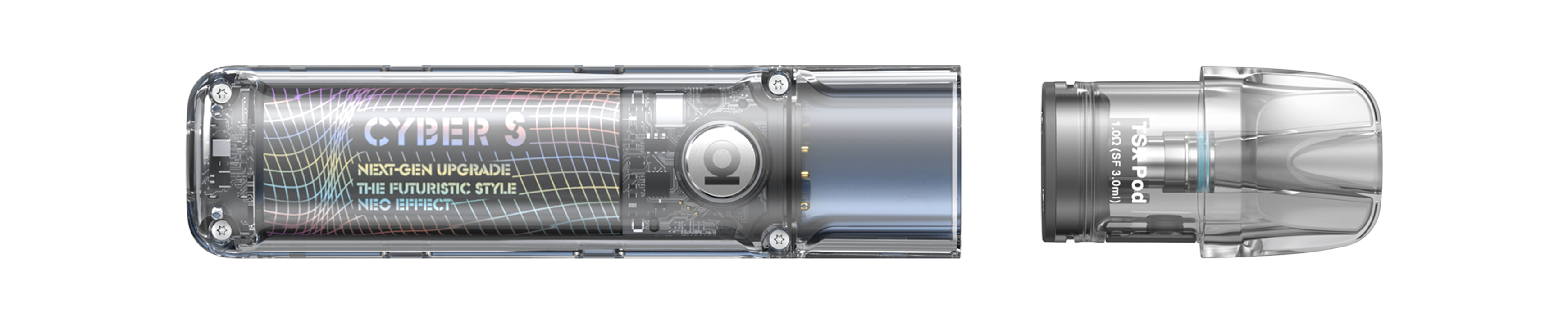 Aspire once again pushes the limits of design, Cyber S puts futuristic transparent body into a sleek and portable design, you’ll enjoy exceptional quality and style you’d expect from a next-generation vape.